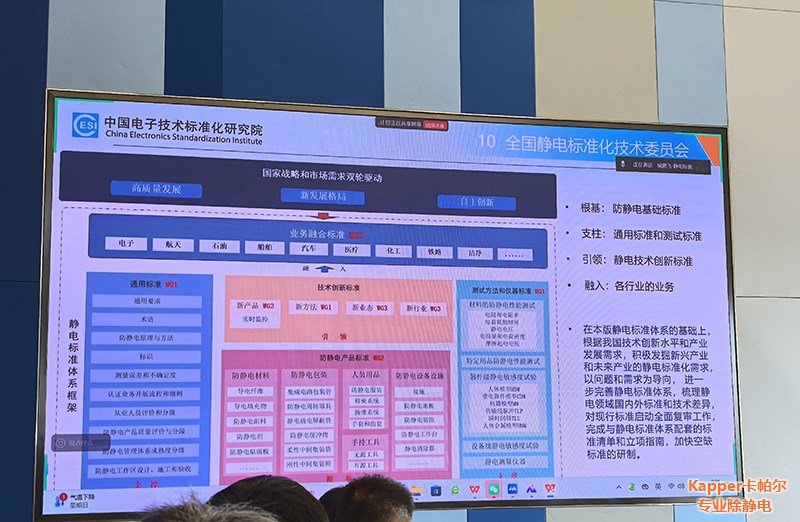 2025年8月7日,全國靜電標(biāo)準(zhǔn)化技術(shù)委員會《靜電學(xué)》國家標(biāo)準(zhǔn)研討會在上海浦東新區(qū)隆重召開。作為中國靜電控制領(lǐng)域的領(lǐng)軍企業(yè)代表,Kapper卡帕爾總經(jīng)理王春元出席本次會議,與靜電標(biāo)委會ESD專家30余家企業(yè)代表共議國標(biāo)修訂,為提升我國靜電防護(hù)技術(shù)水平、規(guī)范行業(yè)發(fā)展貢獻(xiàn)智慧與力量。