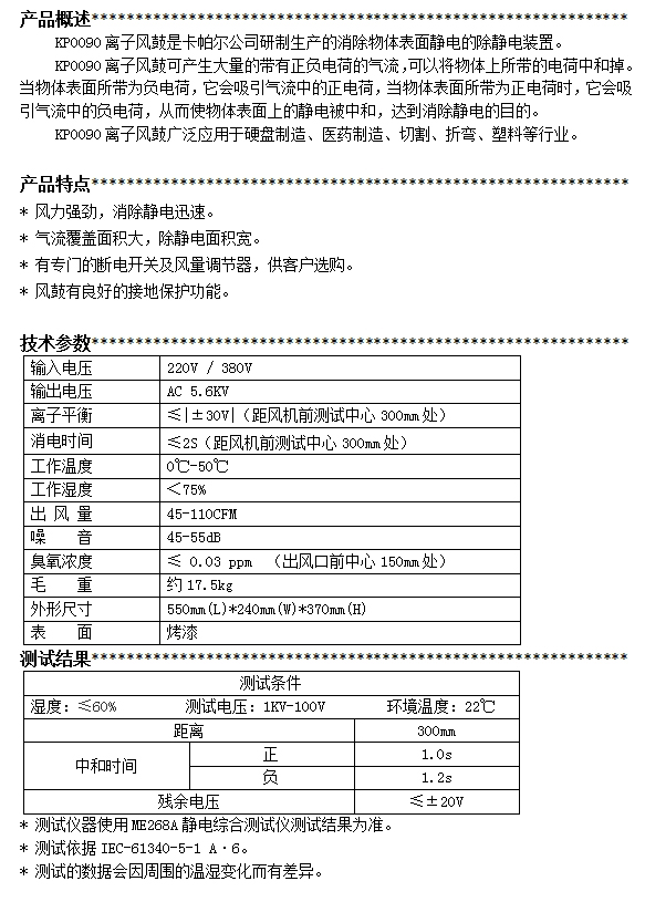 KP0090離子風鼓