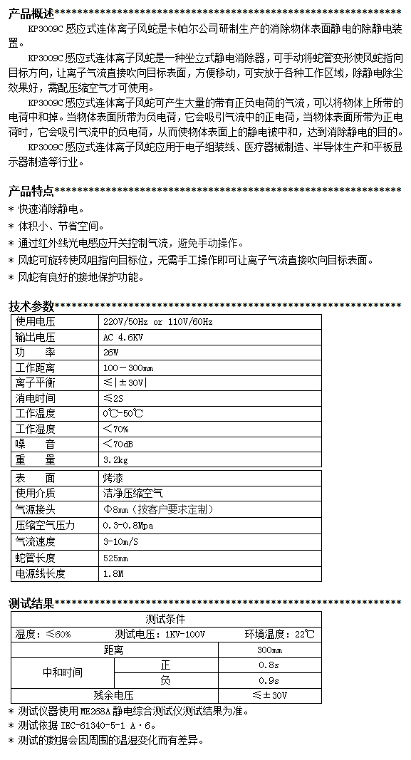 KP3009C第三代感應式連體離子風蛇