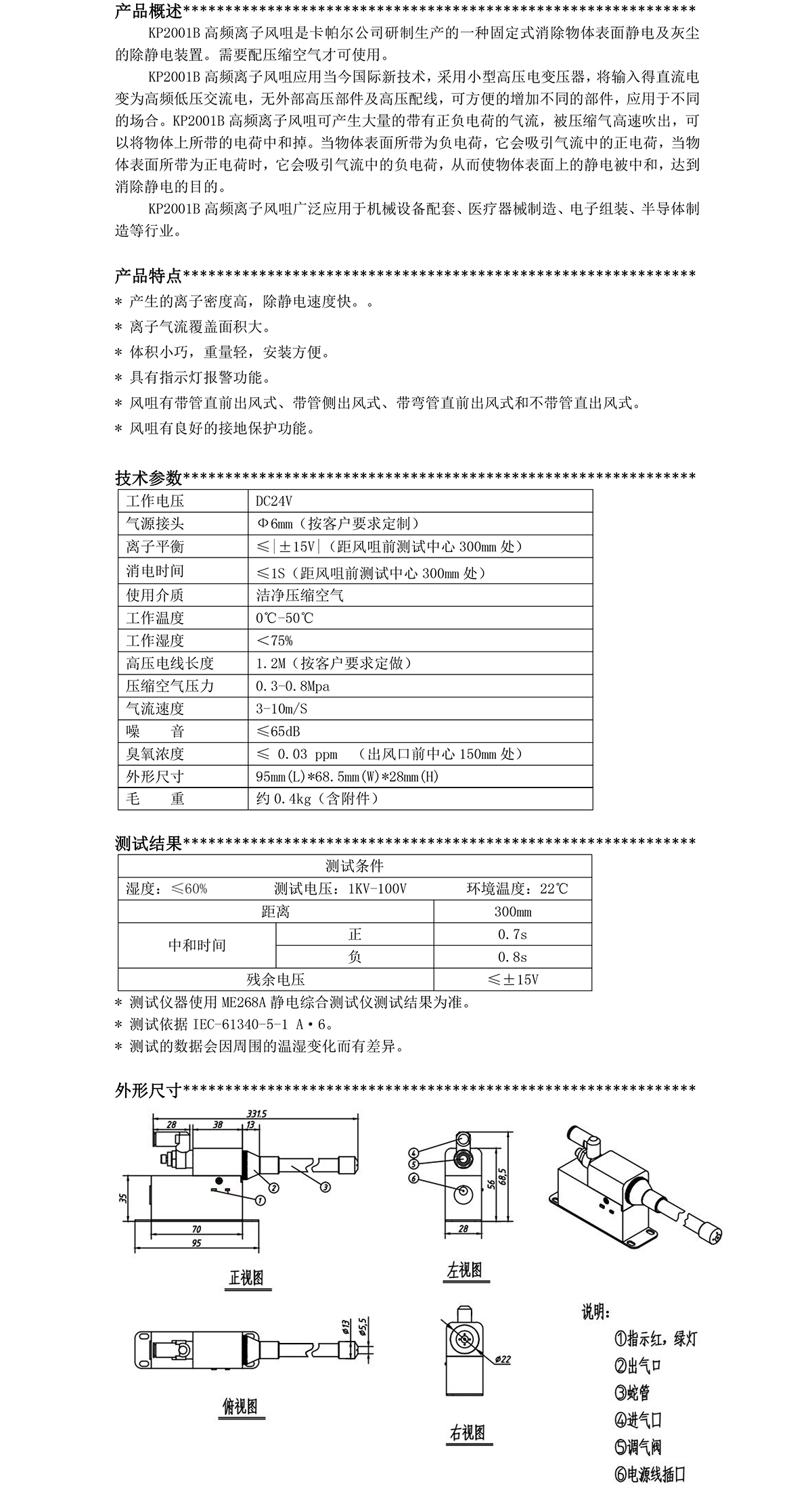 KP2001B第四代高頻離子風咀