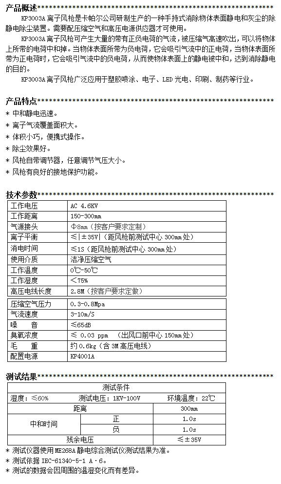 KP3003A第三代膠體圓頭離子風槍