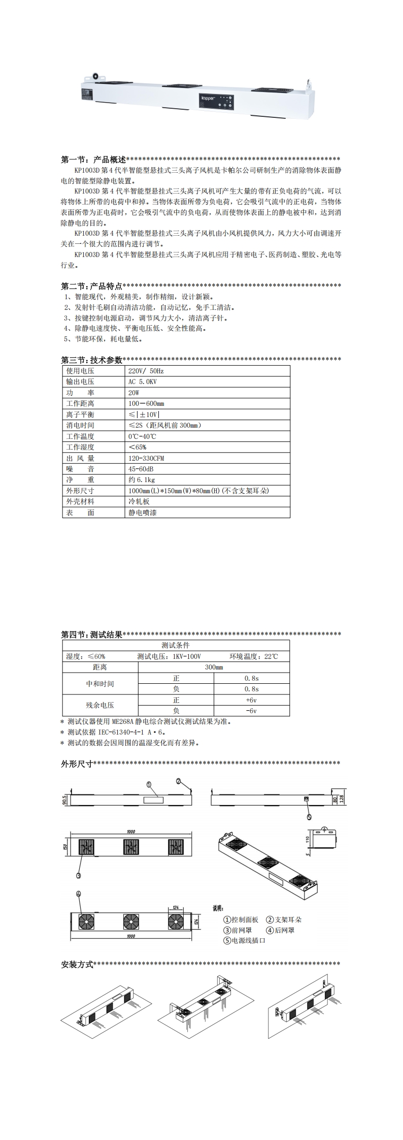 KP1003D第4代半智能型懸掛式三頭離子風(fēng)機