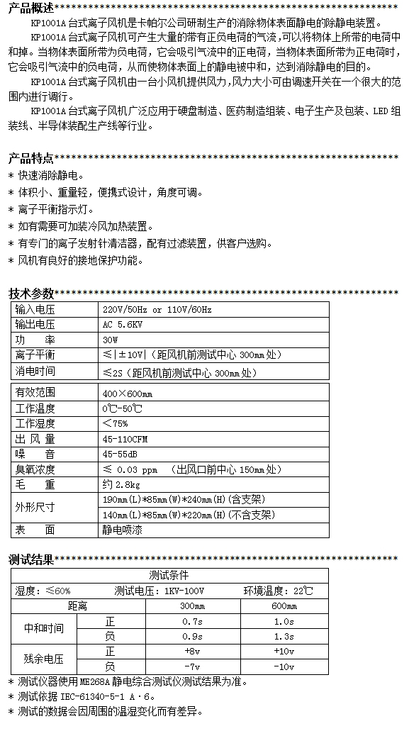 KP1001A第三代臺式離子風機