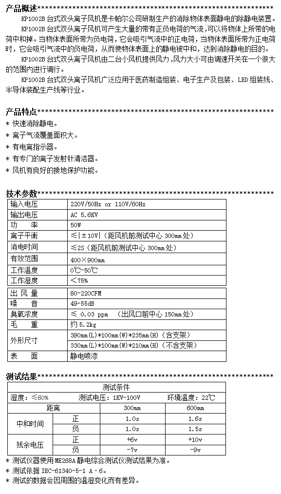 KP1002B第三代臺(tái)式雙頭離子風(fēng)機(jī)