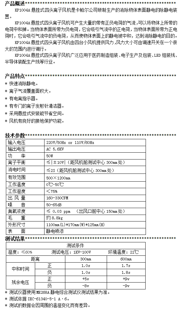 KP1004A第三代懸掛式四頭離子風機