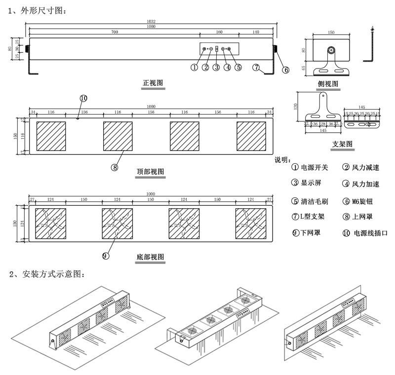 KP104A第5代智能型懸掛式四頭離子風機可產生大量的帶有正負電荷的氣流,可以將物體上所帶的電荷中和掉。當物體表面所帶為負電荷,它會吸引氣流中的正電荷,當物體表面所帶為正電荷時,它會吸引氣流中的負電荷,從而使物體表面上的靜電被中和,達到消除靜電的目的。